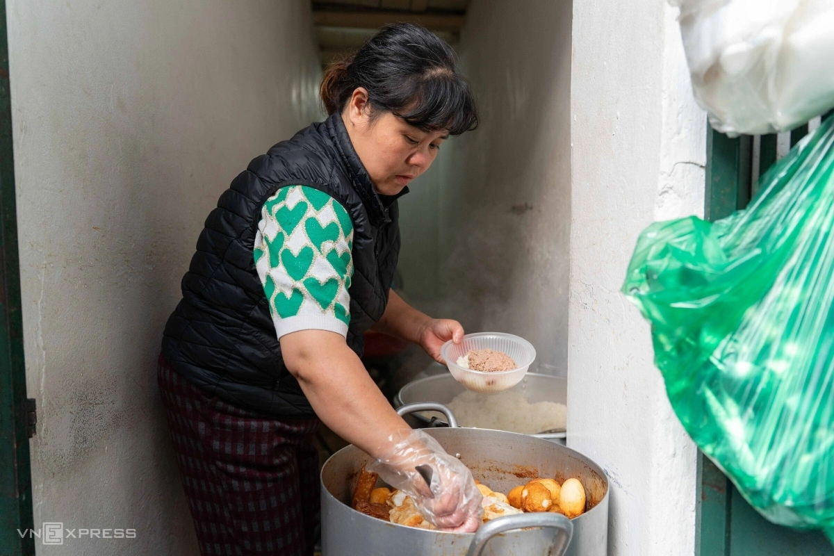 Bà Tạ Đăng Hằng tiếp quản quán xôi từ mẹ khoảng 15 năm nay. Mỗi ngày, bà Hằng dậy từ 2h để chuẩn bị nguyên liệu, mở hàng từ 6h30, bán hết trước 14h30.